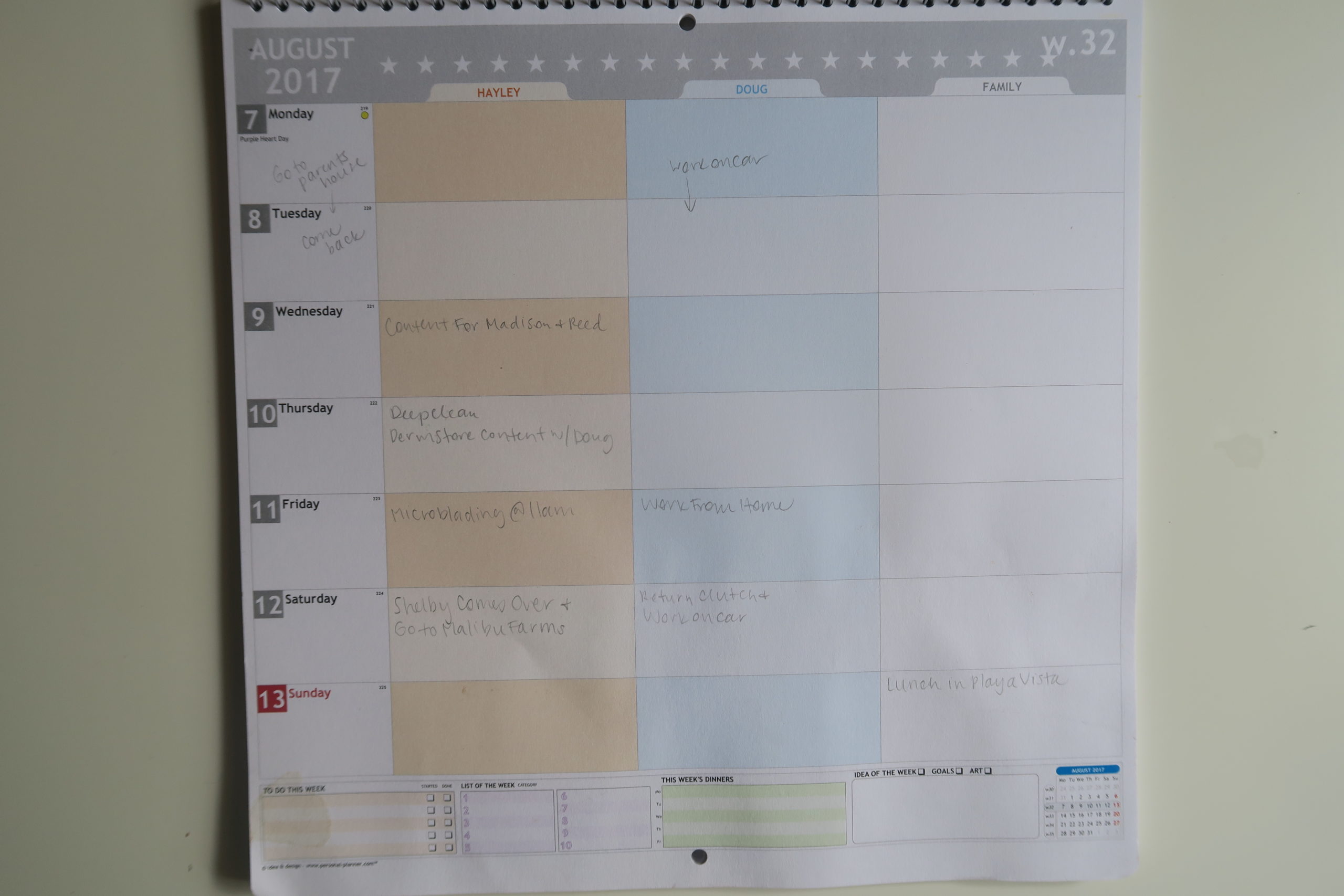 This is a sample of the month of August. I wanted to share this idea with you because so many new Moms come to me and ask how I manage it all while telling me how overwhelmed they are. Trust me, I’ve been there and am still there some days! Over these past eight months, I’ve learned to be more intentional with my goals. If I want a solid marriage/ friendships or if my goal is to advance my career, I have to carve out time each week to do so and this has helped make everything I want attainable so that Doug and I are on the same page while still giving the best to Annabelle!